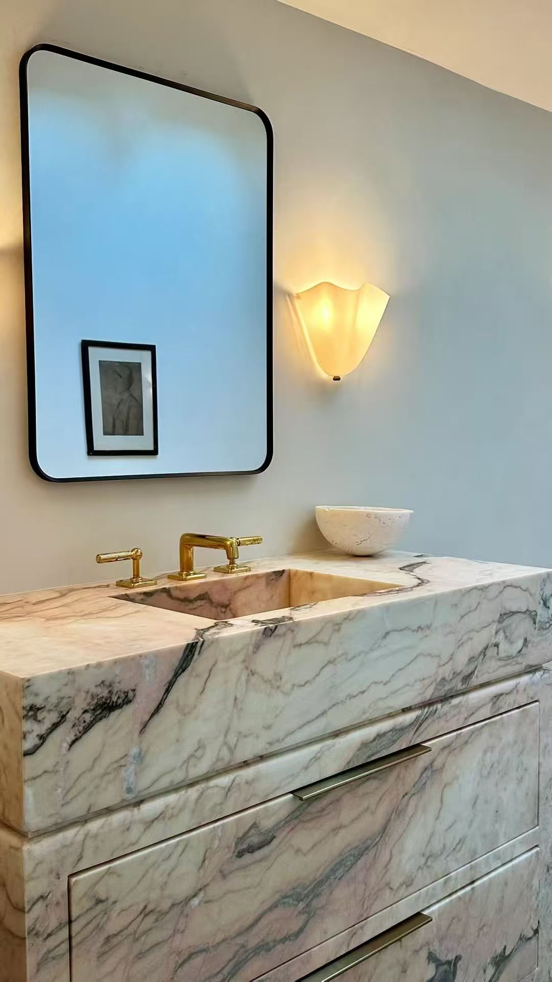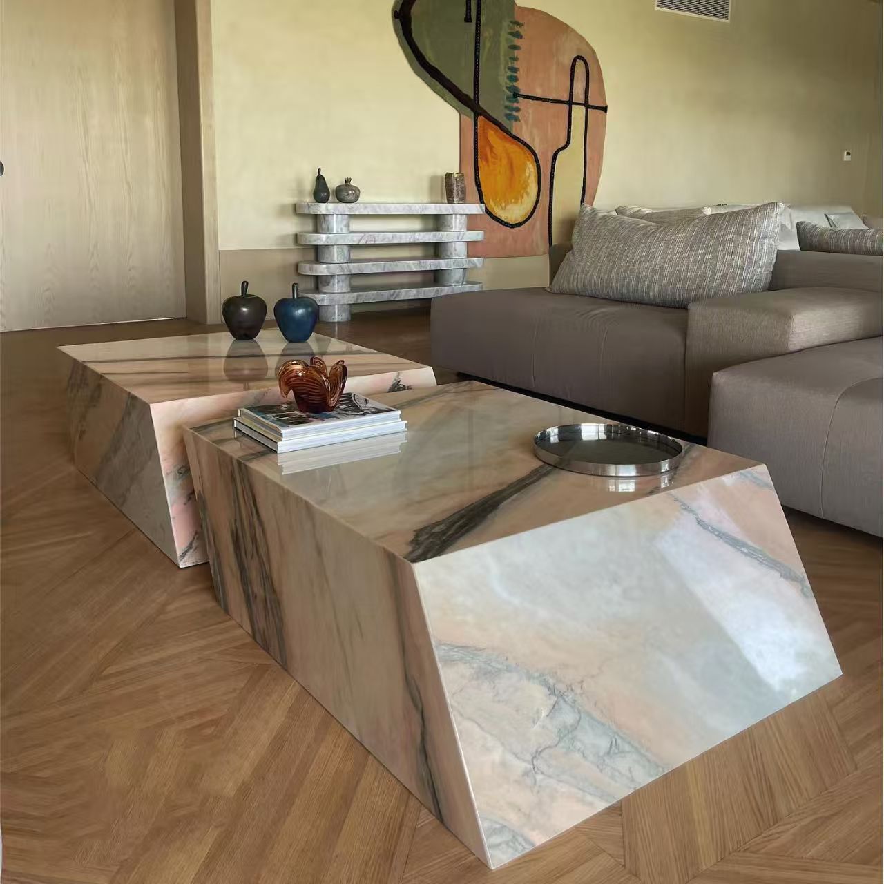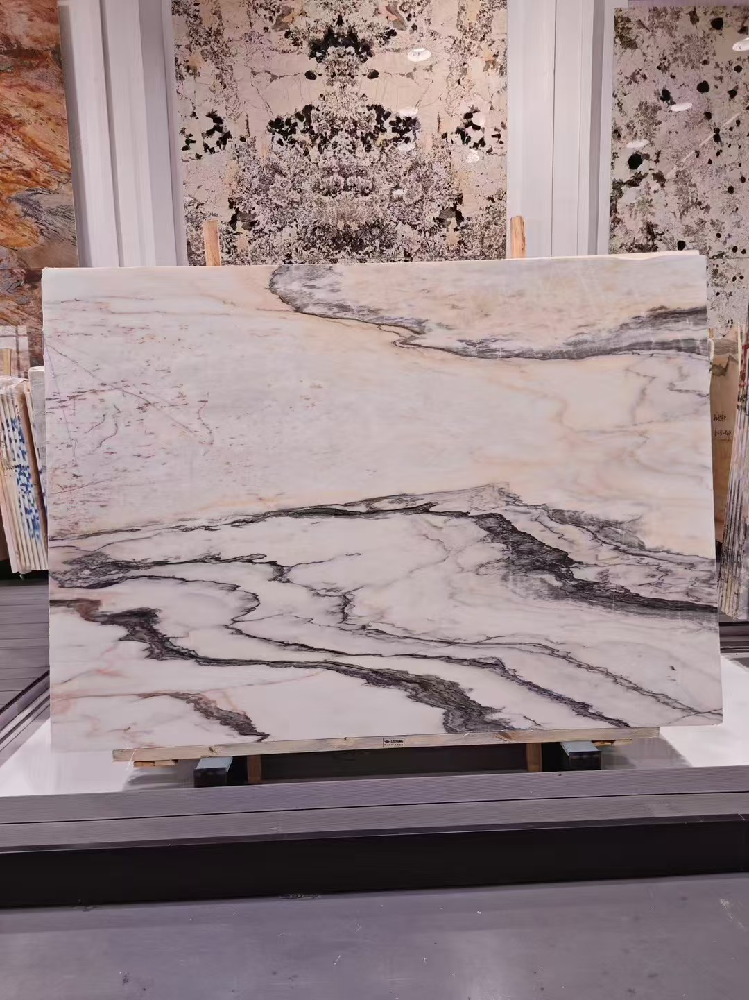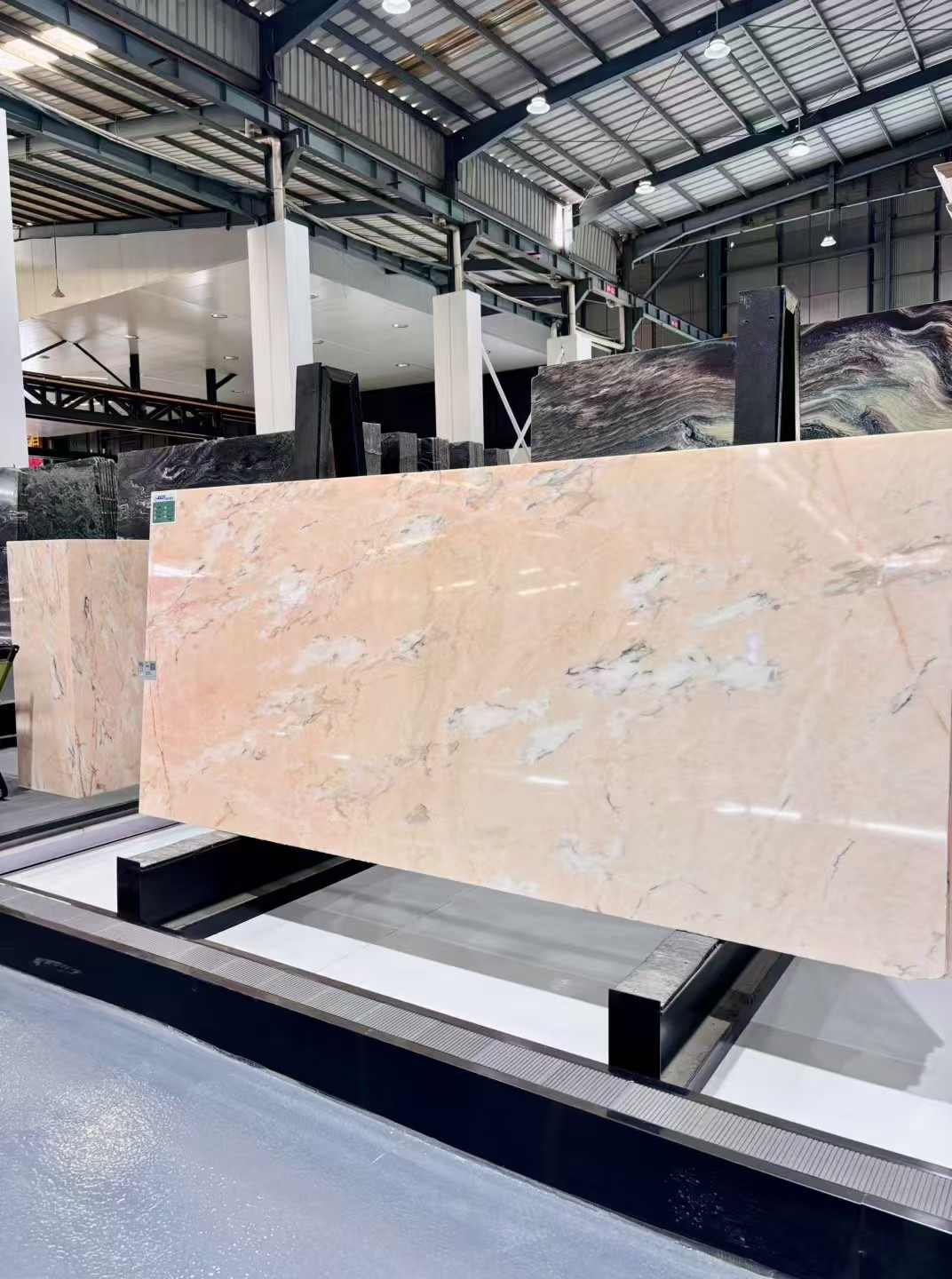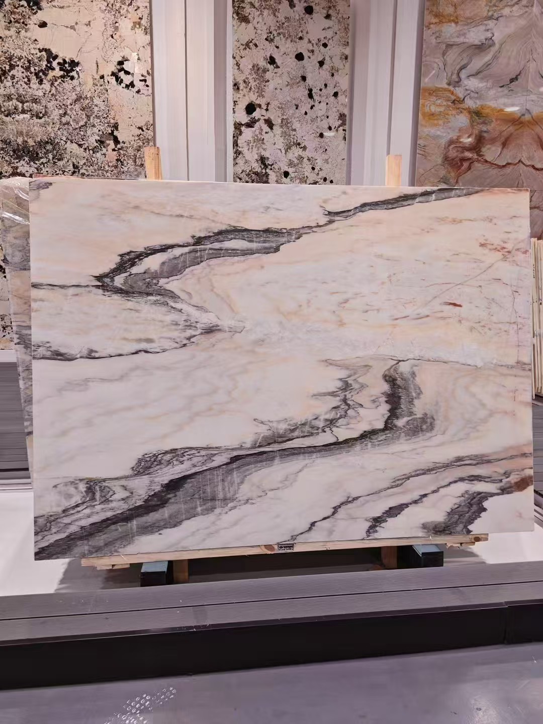 Portuguese Calacatta Viola Oro Rosa Marble is commonly used for walls and floors in indoor living rooms and bathrooms, creating a warm and elegant atmosphere. It can be processed into marble kitchen countertops, marble bathroom vanities, various furniture countertops and facades. It can also be used as a dry-hanging stone for building exteriors. For artistic decoration, it can be used for carvings, sculpted surfaces, bar counters, service counters, etc., enhancing the artistic feel of the space. It is durable, has a long service life, good physical stability, high rigidity, is not easily deformed, has good wear resistance, and a high modulus of elasticity.
